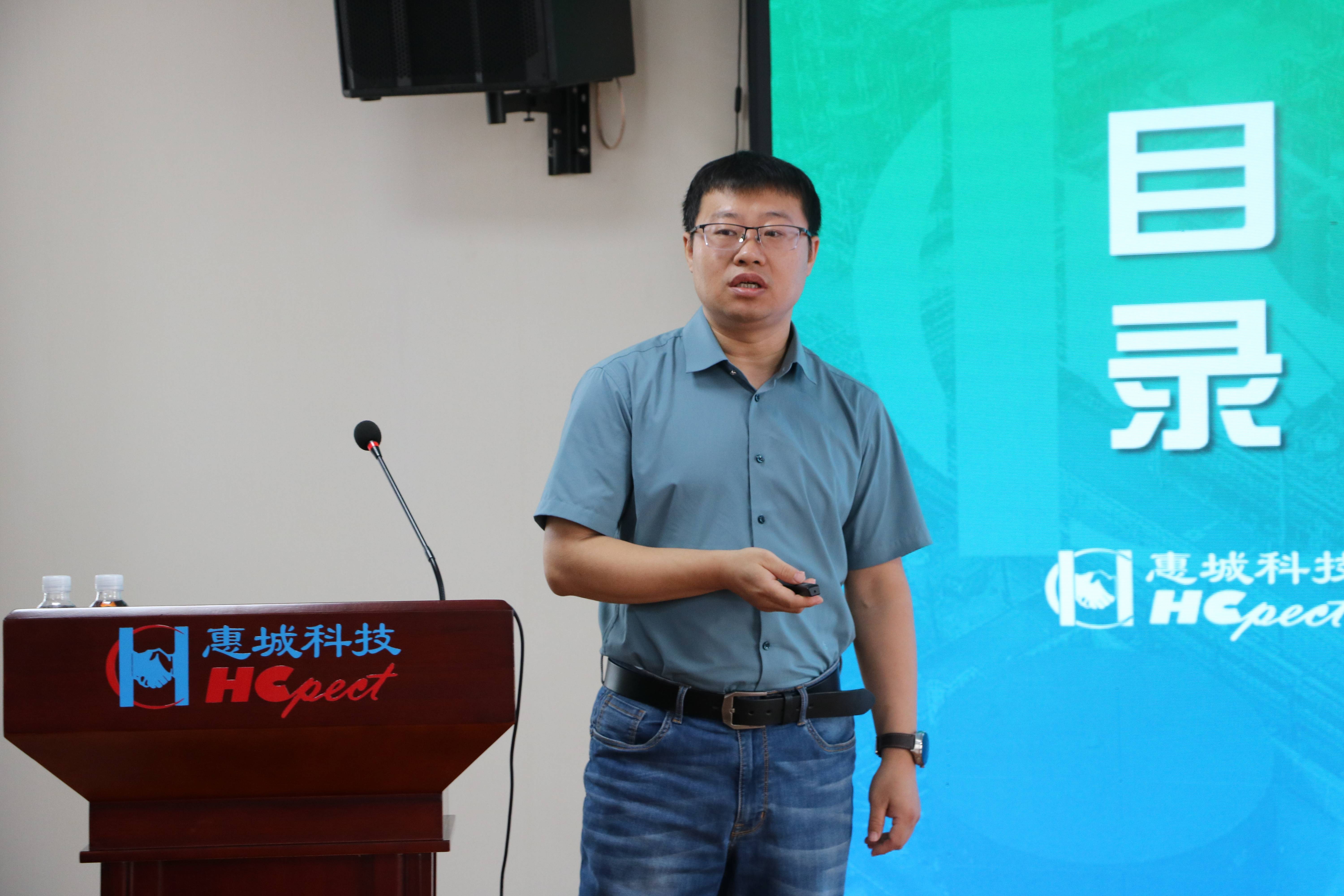 惠城环保总经理助理李世鹏为新员工培训“集团发展历程、企业文化、职场新人角色转换等”
